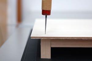 木ネジは最初にキリで下穴を開けてからねじ込みます。