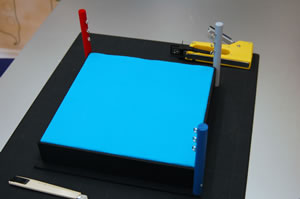 マットに使用するラワン合板(265×265×12mm)の4辺と対角線に